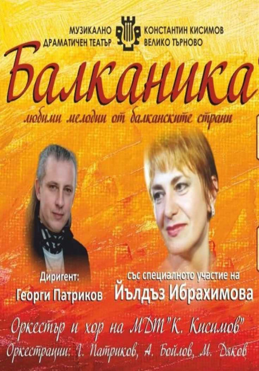 В програмата ще звучат българска копаница в обработка за симфоничен оркестър на Здравко Русев, „Хоро стакато“ на Григораш Динику и Панчо Владигеров, „Румънска рапсодия №1“ на Джордже Енеску и още популярни песни от балканския фолклор в шеметна симфонична обработка. Любими мелодии от балканските страни в изпълнение на неповторимата Йълдъз с оркестър и хор на Музикално Драматичен Театър „К. Кисимов“ – Велико Търново.