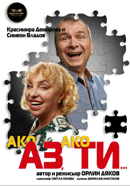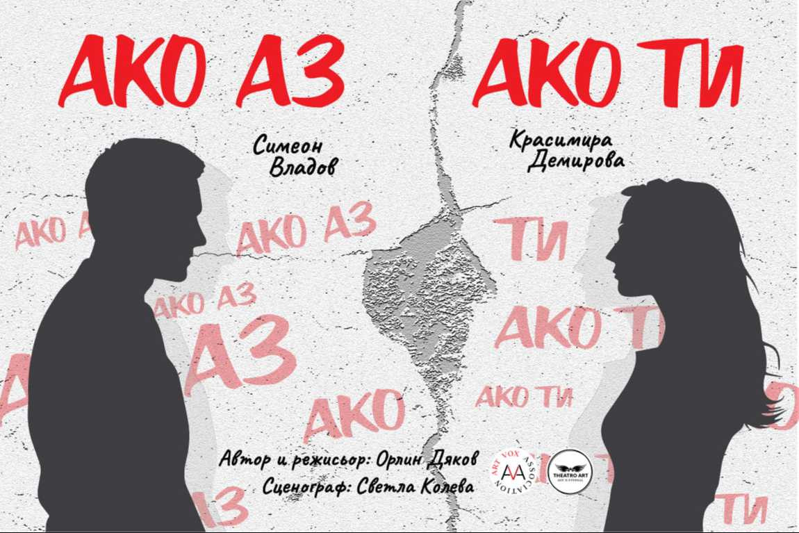 Това е една история за развод с всичко необходимо – скандали, обвинения и нещо неизказано. Дали неизминатите пътища един към друг не минават през погрешната му представа за това какъв трябва да е мъжът или през нейната представа каква трябва да е жената? Дали раздялата е неизбежна и непроведеният от години разговор няма да реши проблема? Разказваме тази история с много хумор и една сълза. А каква е историята ще разберете ако гледате спектакъла „Ако АЗ, ако ТИ…“, автор и режисьор Орлин Дяков с участието на Красимира Демирова и Симеон Владов